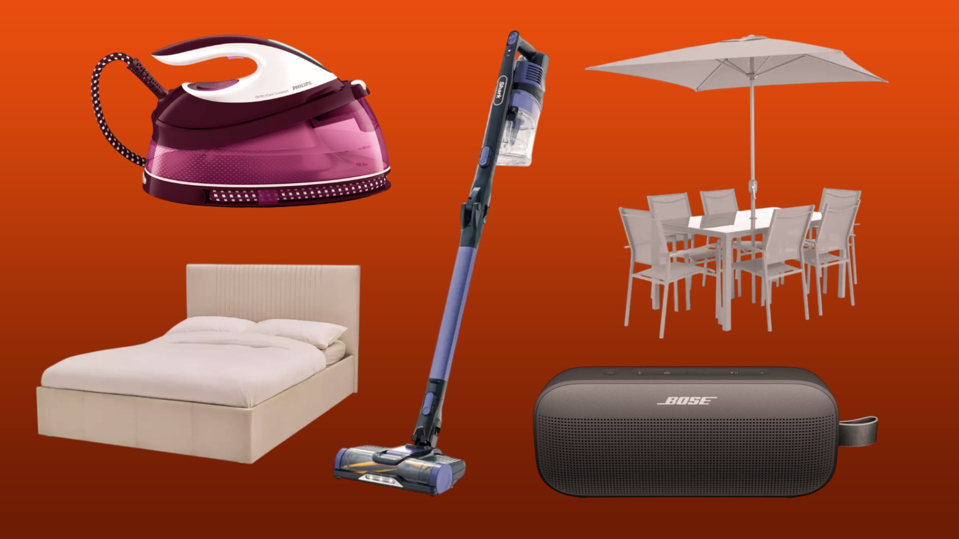 The sale includes discounts across garden furniture, home appliances, toys and tech, with selected lines reduced by up to 50%.