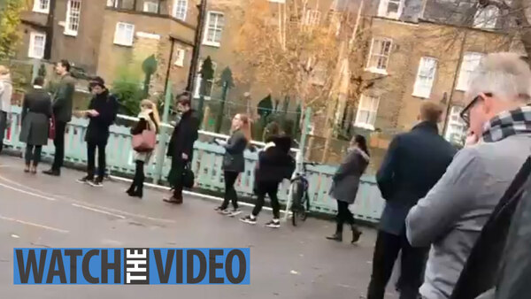 2019 General Election voters queue around a school playground in 50 minute wait at Vauxhall polling station