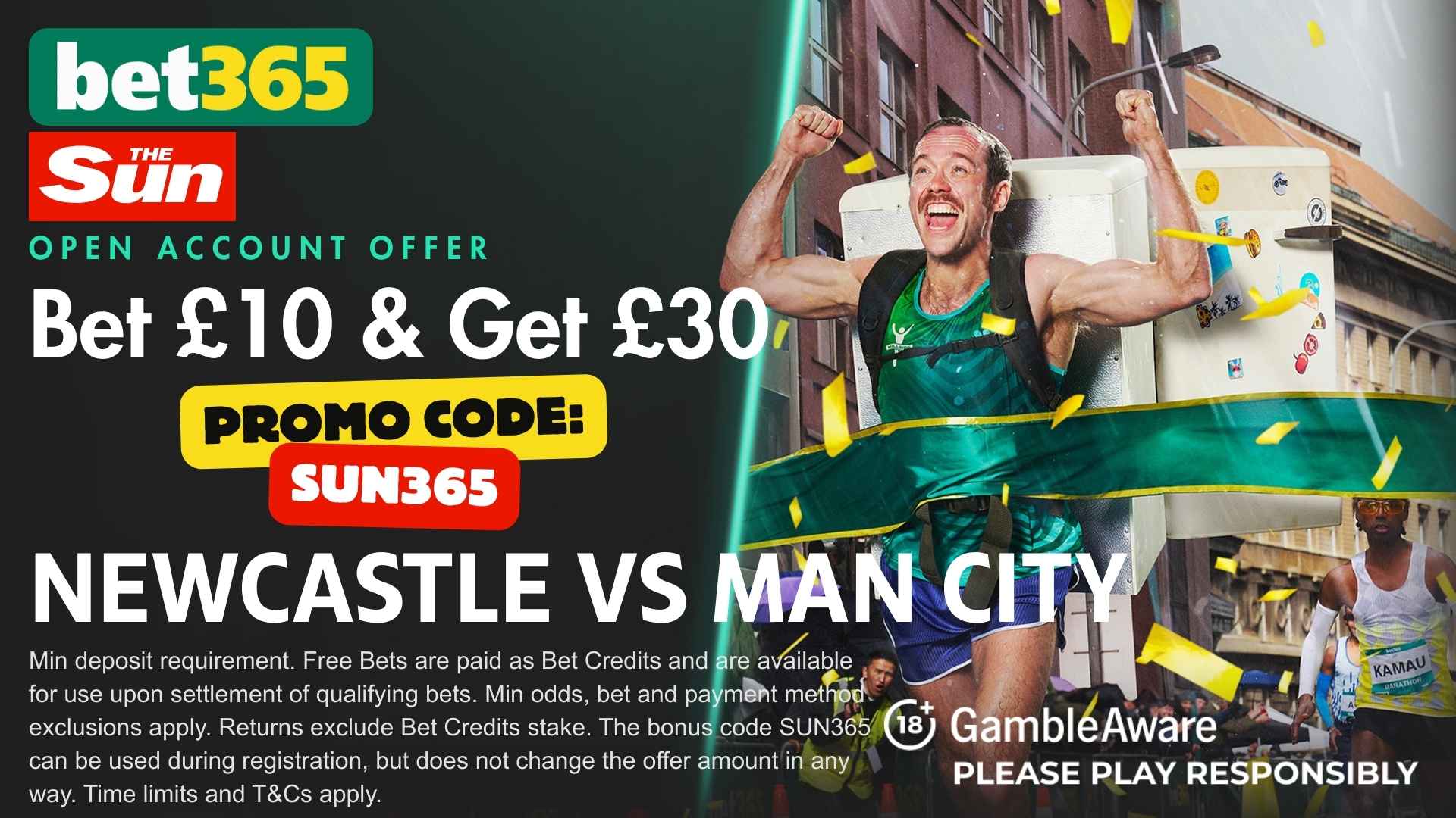 - Place a qualifying wager on Newcastle vs Man City at odds of 1/5 (1.20) or higher.