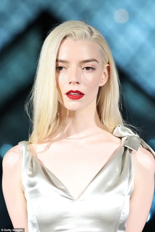 The Queen’s Gambit star Anya Taylor-Joy wears her platinum blonde locks in a soft, side-parting during a fundraiser for the Louvre earlier this month