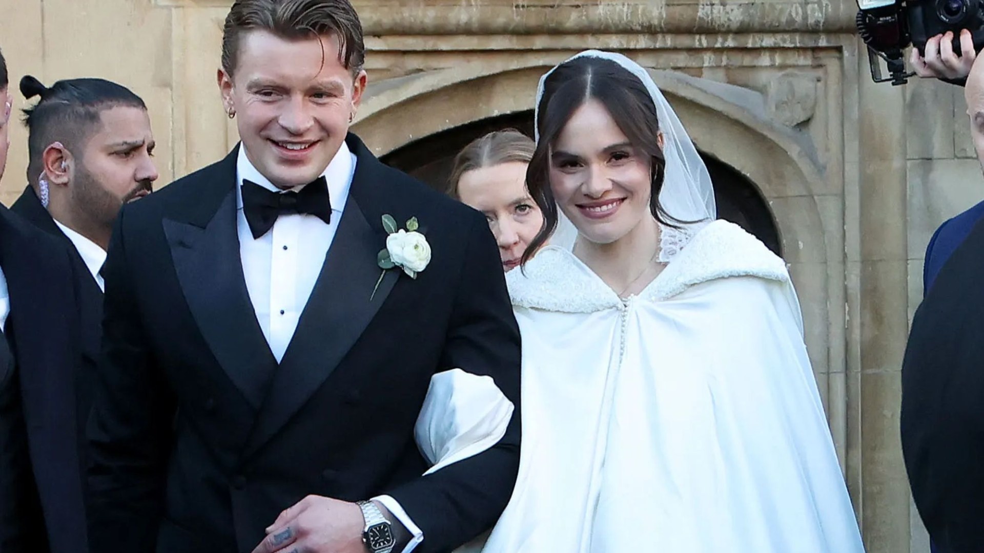 “The paps who had been on the back door sprinted around to try and catch up with them at the front door of the church, and they came to blows in a narrow alleyway at the side of the church just yards from 100s of members of the public who had been waiting for the church service to begin.