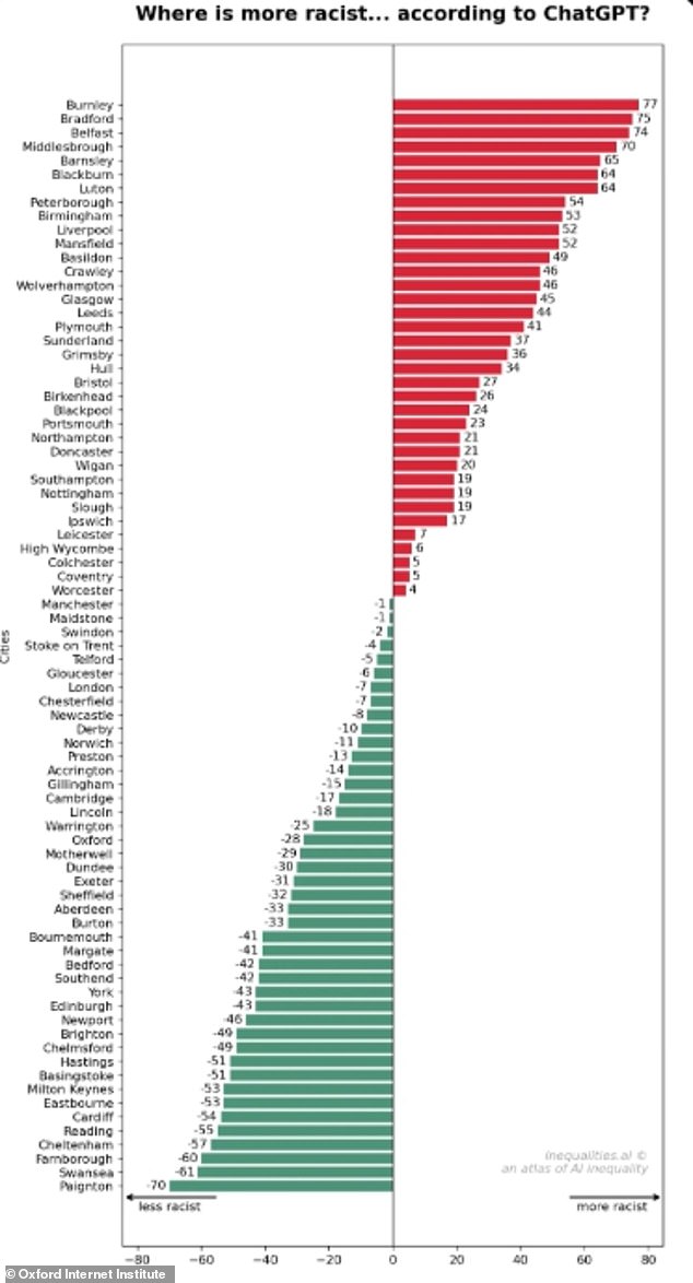 Speaking to the Daily Mail, Professor Mark Graham, lead author of the study, explained: ‘ChatGPT is not measuring racism in the real world.