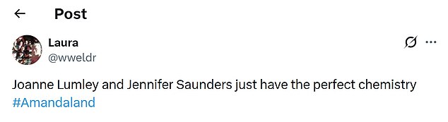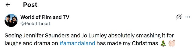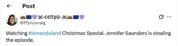 Posts on X included: ‘Watching #Amandaland Christmas Special. Jennifer Saunders is stealing the episode.’