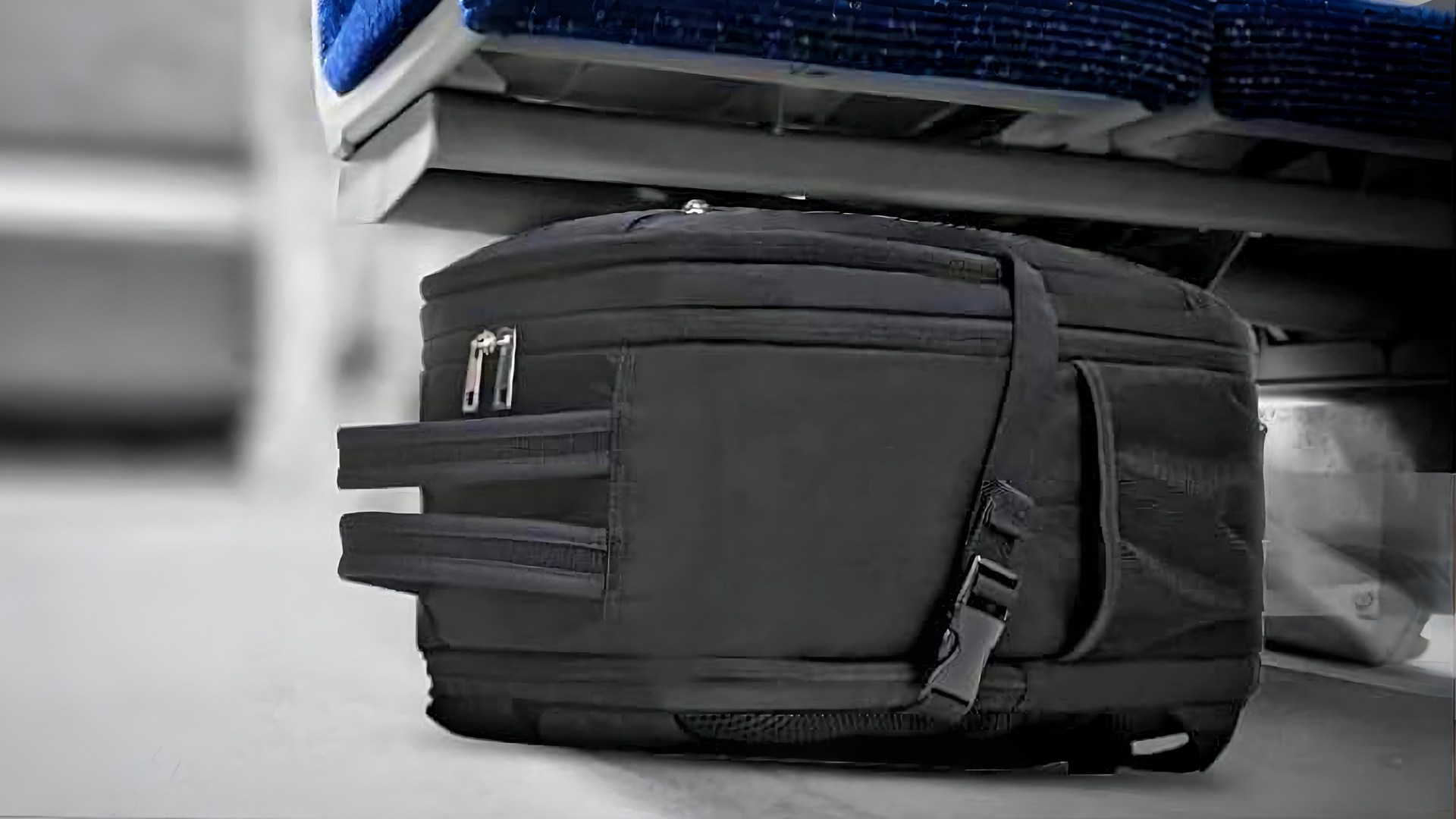 “It fits in the Ryanair test frame – as long as it’s not overloaded – and fits easily under the seat.”