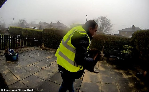 Mr Crowther added: ‘It’s absolutely disgusting. He was there for over six minutes. He comes right up the door, picks up the cat, turns around and walks off.