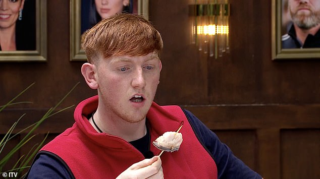Hosts Ant and Dec were full of glee as they watched Ginge sit down and look full of disgust at the plate in front of him