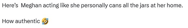 Others said: ‘Here’s Meghan acting like she personally cans all the jars at her home. How authentic’;