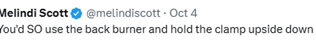 One person noted: ‘You’d SO use the back burner and hold the clamp upside down.’