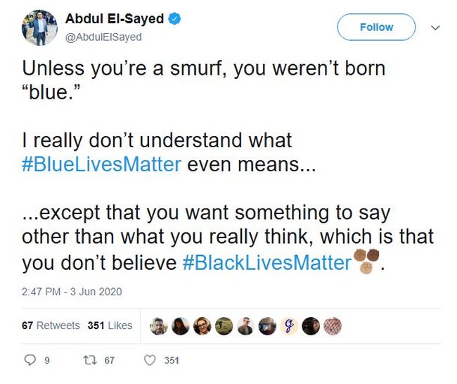 “Most major US cities spend WAY TOO MUCH on police departments to police poverty & WAY TOO LITTLE on public schools, health departments, recreation departments, & housing to eliminate poverty. Fixing that is what the #Defund movement is about,” El-Sayed wrote in a since-deleted post from June 2020.