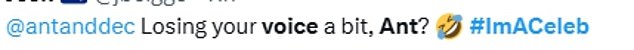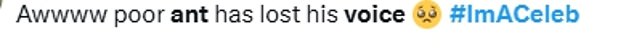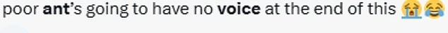 Many took to X, formerly known as Twitter, to share their concern about Ant’s throat – with one asking if anyone had a lozenge