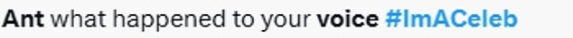 Fans wrote on social media: ‘Poor Ant’s voice.’