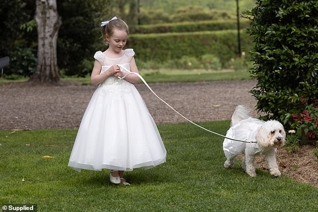 The bride wore a long-sleeved white gown complete with a veil as she said ‘I do’ at The Lodge in Canberra on Saturday.