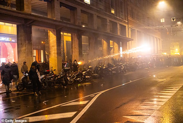 Anti-Israeli protesters launched fireworks at police in violent scenes on Friday, as thousands took to the streets of Bologna to demonstrate against an Israeli basketball team ahead of a EuroLeague game in the Italian city.
