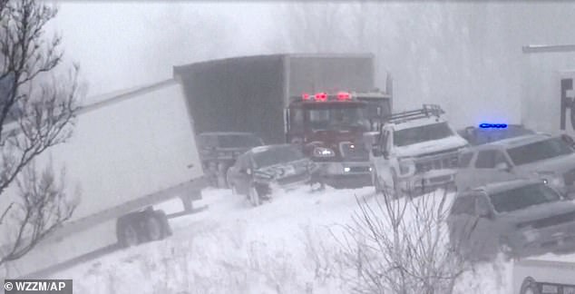 On Friday, New York drivers were involved in a frightening 30-car pileup on Interstate 81 as seven people were rushed to hospital at around 2.20pm.