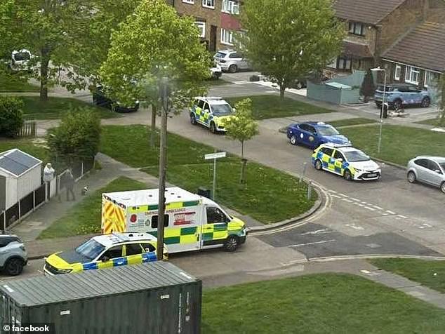 Police and paramedics were pictured in Southend-on-Sea after being called to reports of gunshots
