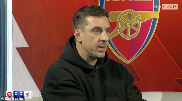 Gary Neville said he was surprised no Liverpool players gave Gabriel Martinelli a ‘whack’