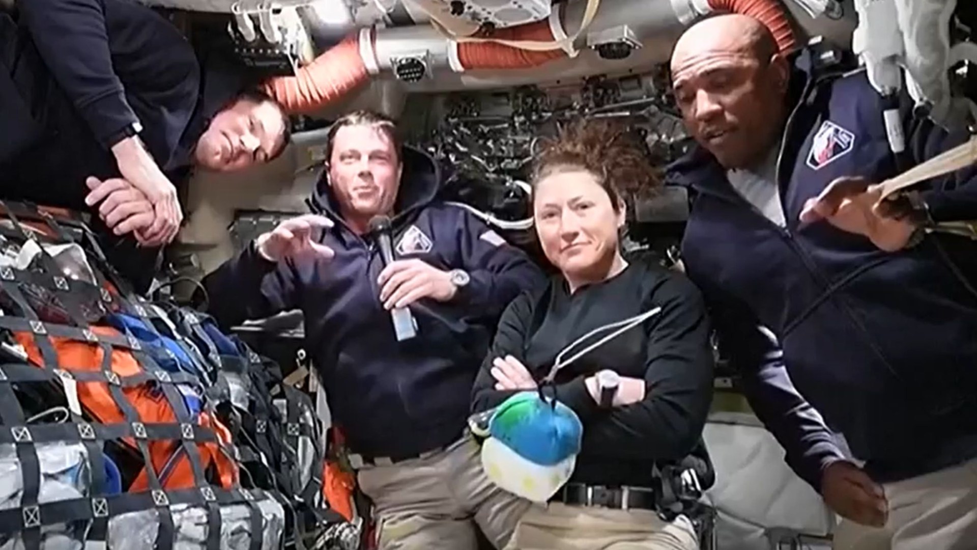 “You can actually make out the coastline of the continent, rivers, you can see the South Pole lit up. It is just phenomenal. You guys look great.”