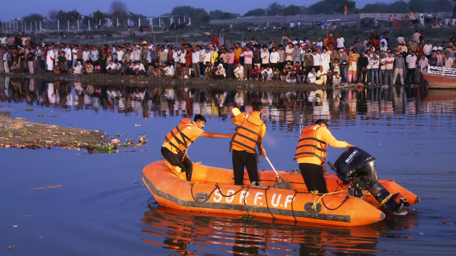 The overcrowded vessel overturned on the Yamuna River near Keshighat in Mathura, Uttar Pradesh.