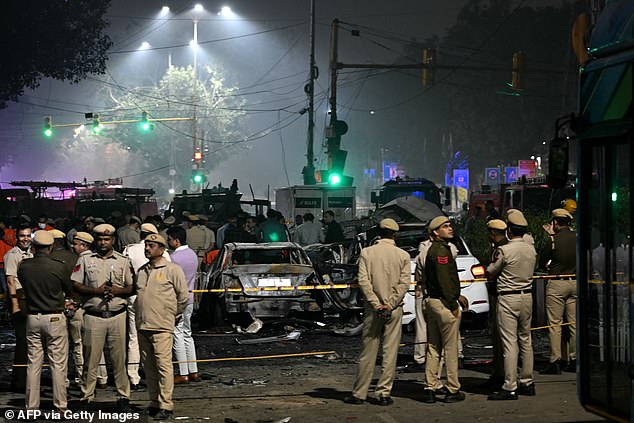 A witness who lives near the site told the NDTV broadcaster that he heard a ‘window-shattering sound’ and then saw flames engulfing multiple vehicles.