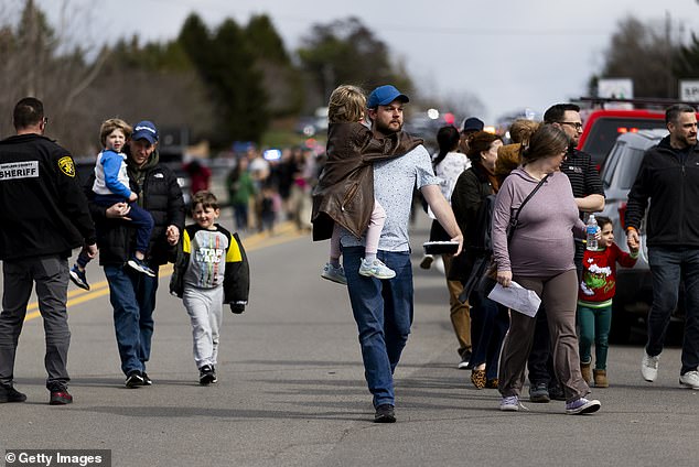 Parents carried their children away from the Temple Israel synagogue in West Bloomfield, Michigan, on Thursday after a gunman drove a truck into the building