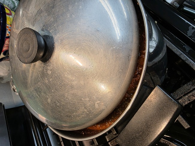 Turn the temp to low, let it sit for a half hour or so with a cracked lid, steeping a bit to work all those flavors together, make sure to give it a stir once in a while, and it’s done.
