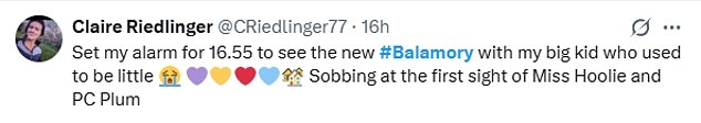 ‘Set my alarm for 16.55 to see the new #Balamory with my big kid who used to be little, sobbing at the first sight of Miss Hoolie and PC Plum.’