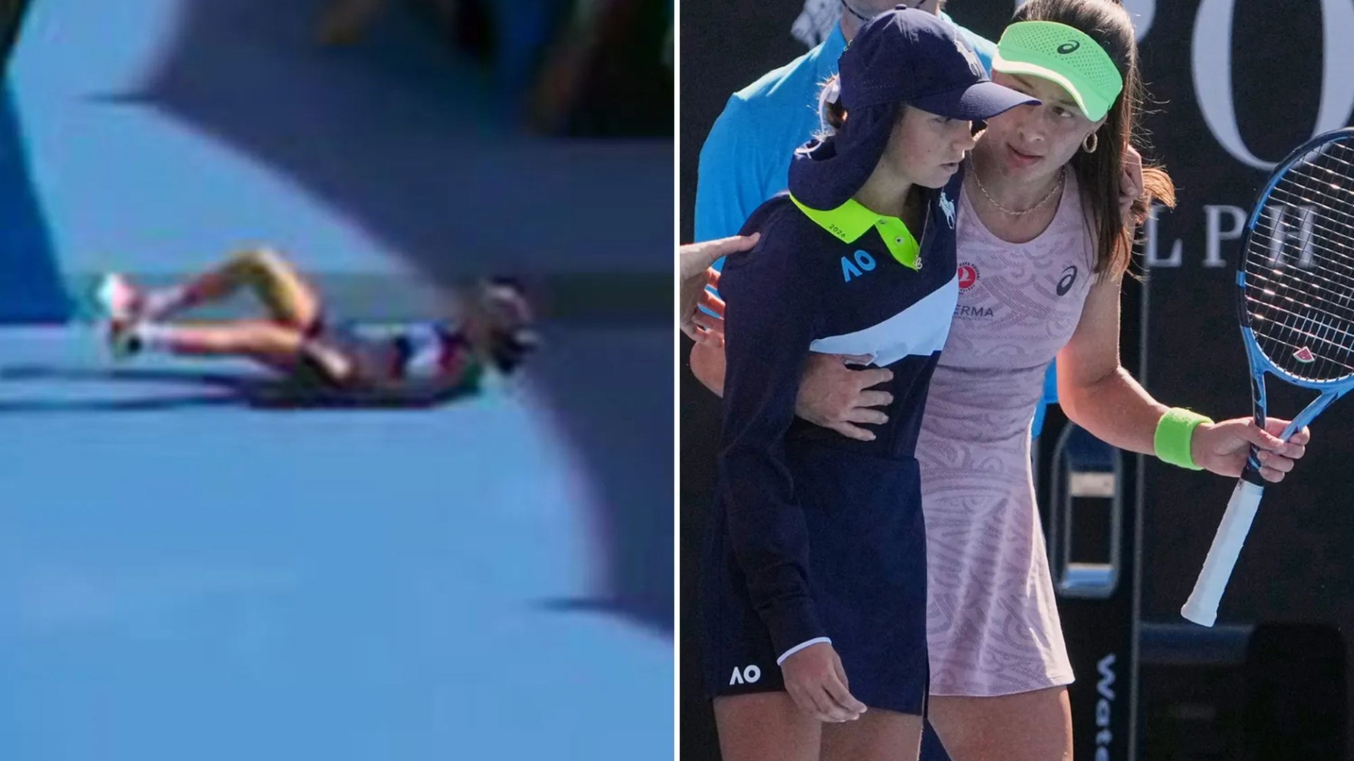 Ball girl collapses at Australia Open with tennis ace hailed after rushing to her aid and helping carry her off court