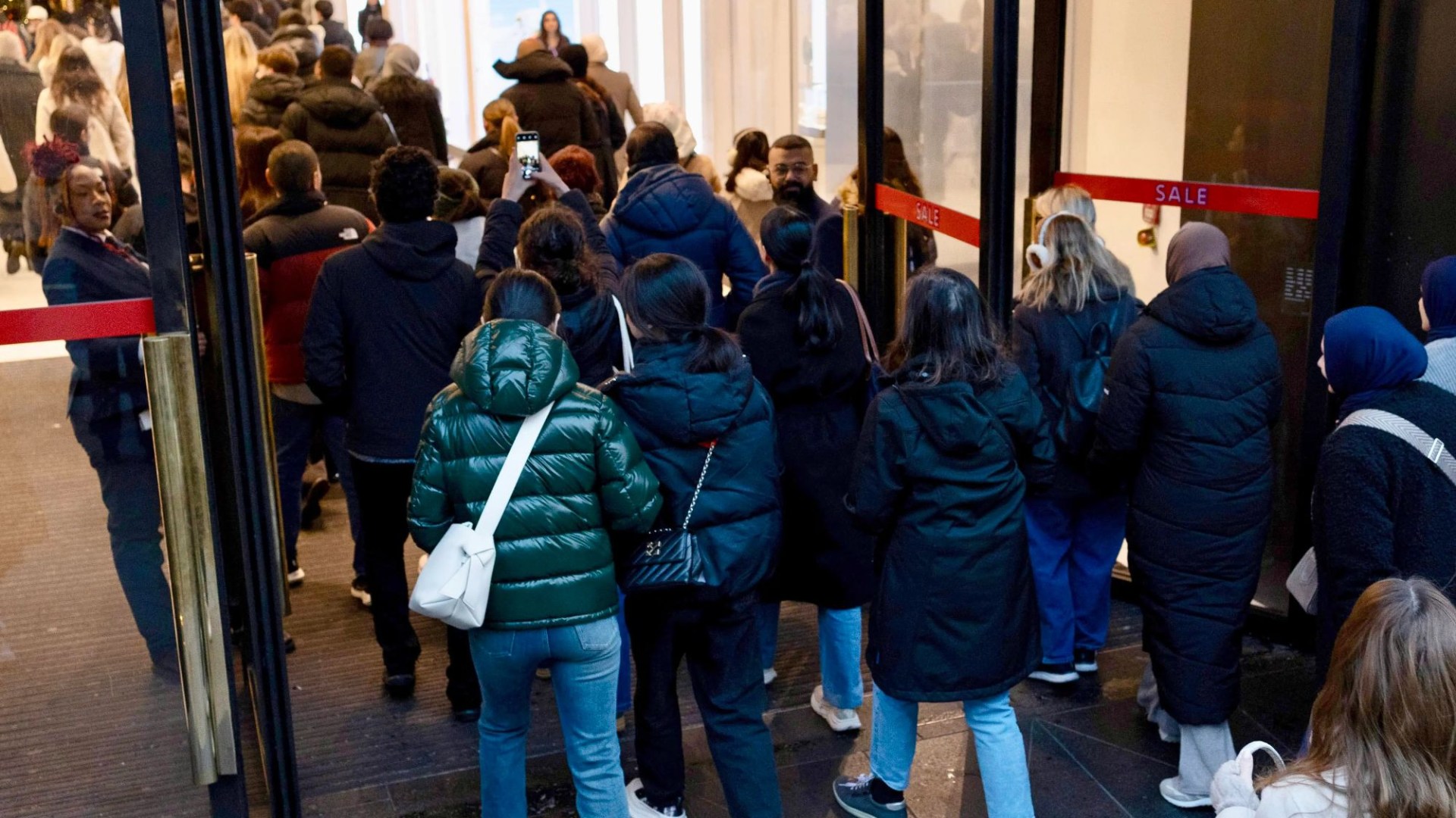 Meanwhile, a small army of shoppers – wrapped up in coats and hats – could be seen at the entrance of Selfridges in central London.