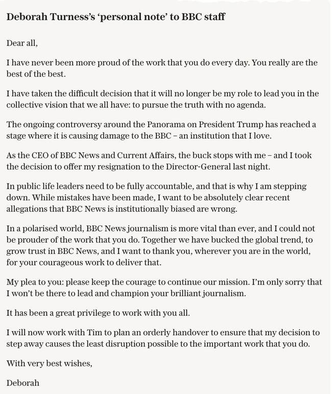 Deborah Turness, the broadcaster’s CEO of News, has also resigned.