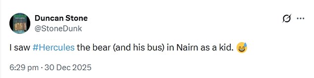 ‘I saw #Hercules the bear (and his bus) in Nairn as a kid’; If you love animals, Hercules the Bear on #BBC2 is great.’