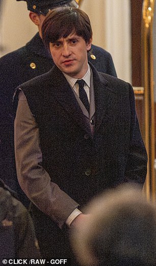Joseph Quinn looked the part as he filmed his scenes as George Harrison, famously referred to as ‘the quiet Beatle’