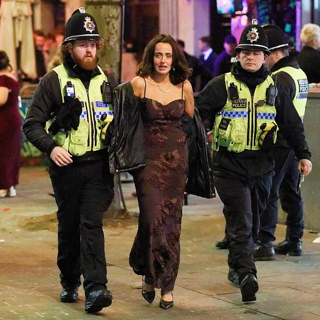 The night did not go to plan for everyone (pictured: a woman is led away in handcuffs by police)