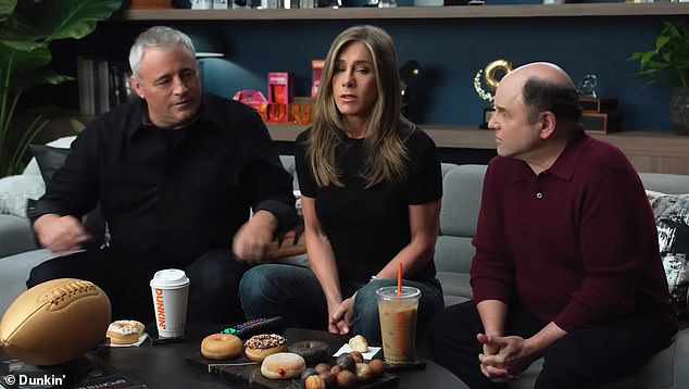 Devoted Dunkin fan Affleck stars in another commercial for the coffee brand, one includes Friends stars Jennifer Aniston, 56, Matt LeBlanc, 58, and Seinfeld alum Jason Alexander, 66.