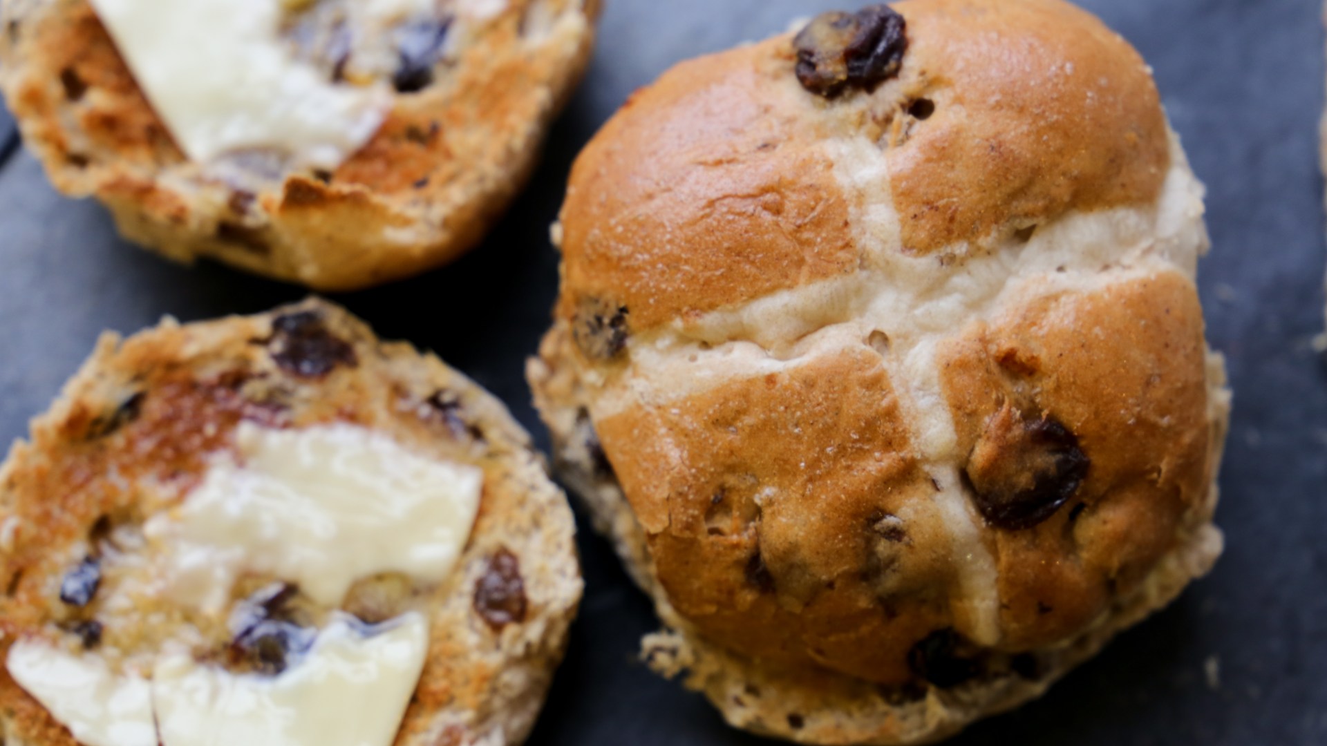 Buttered hot cross buns.