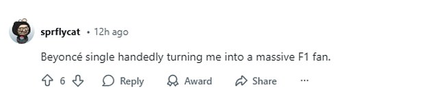 Others lauded her look in general as they penned on the thread: ‘Beyoncé single handedly turning me into a massive F1 fan.’,