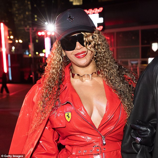 Beyoncé has been lauded for ‘not giving into Hollywood’s trend with Ozempic’ as she delighted fans by showing off her incredible curves in a plunging PVC playsuit at the Las Vegas Grand Prix this weekend.
