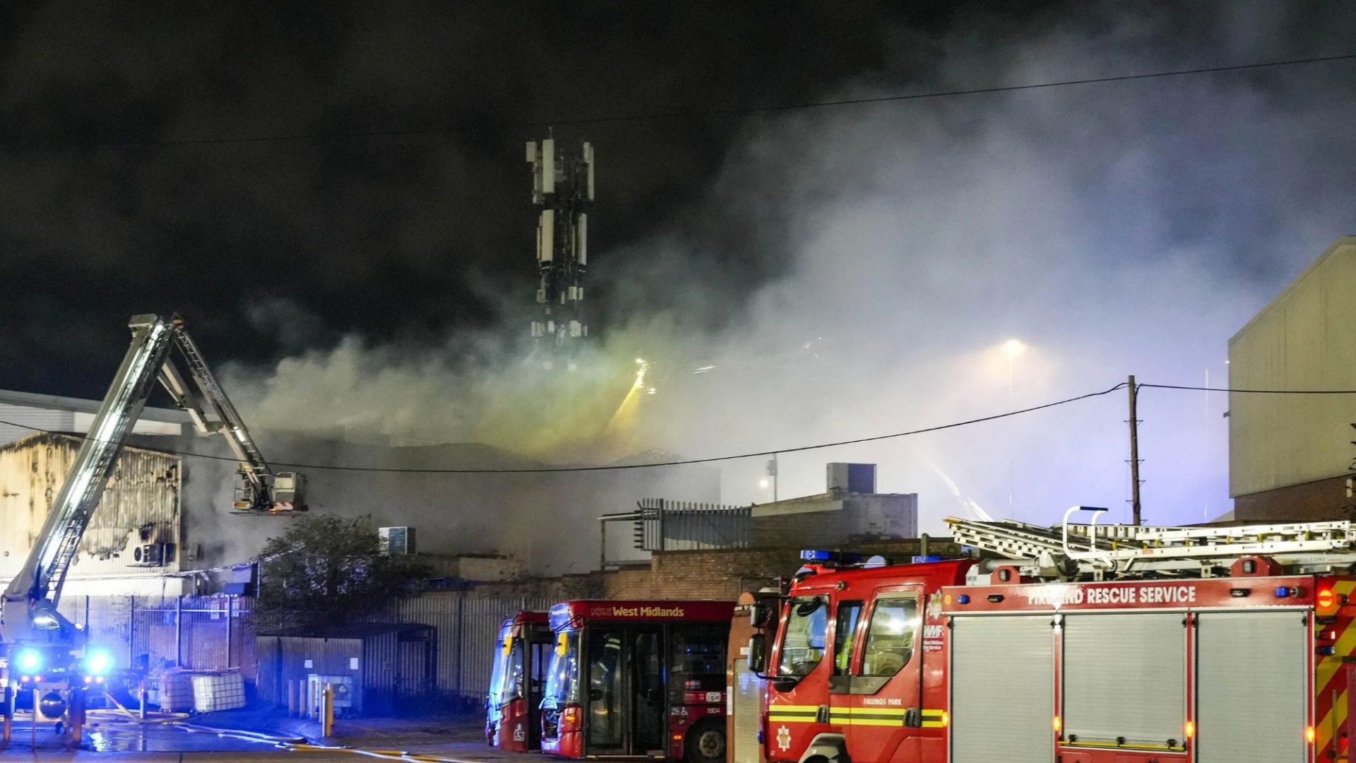 Roughly fifty firefighters are tackling the blaze at the factory in Walsall, West Midlands, this evening.