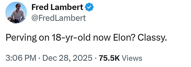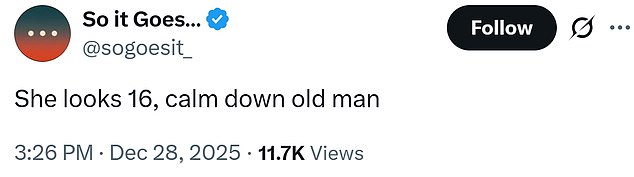 Musk’s critics online were far less forgiving, slamming the 54-year-old for ‘perving’ on the teenager, who turned 19 in August