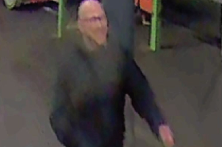 The suspect is described as a white man aged about 40-years-old, bald with a goatee and wearing glasses.