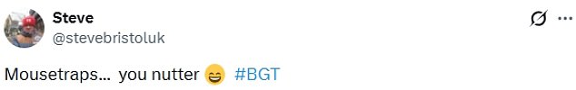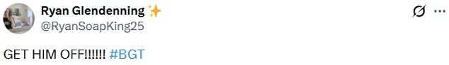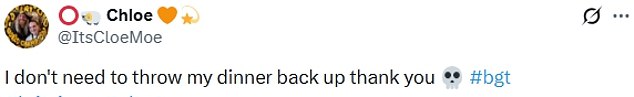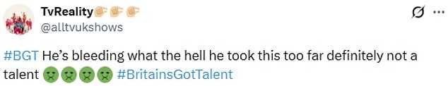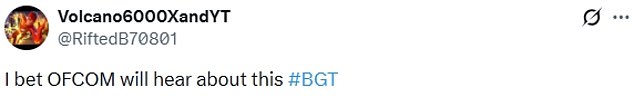 Taking to X, formerly Twitter, horrified viewers wrote: ‘I bet OFCOM will hear about this,’; ‘He’s bleeding what the hell he took this too far definitely not a talent,’;