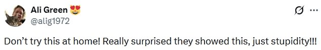 ‘Don’t try this at home! Really surprised they showed this, just stupidity!!!’