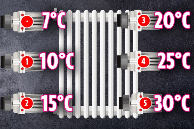 TRVs have numbers printed on them, which roughly correspond to the room temperatures shown above.