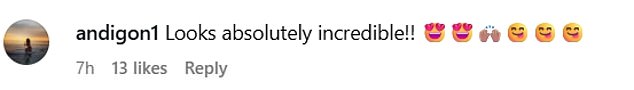 Fans also rushed to the comments to say the meal looked ‘absolutely incredible’