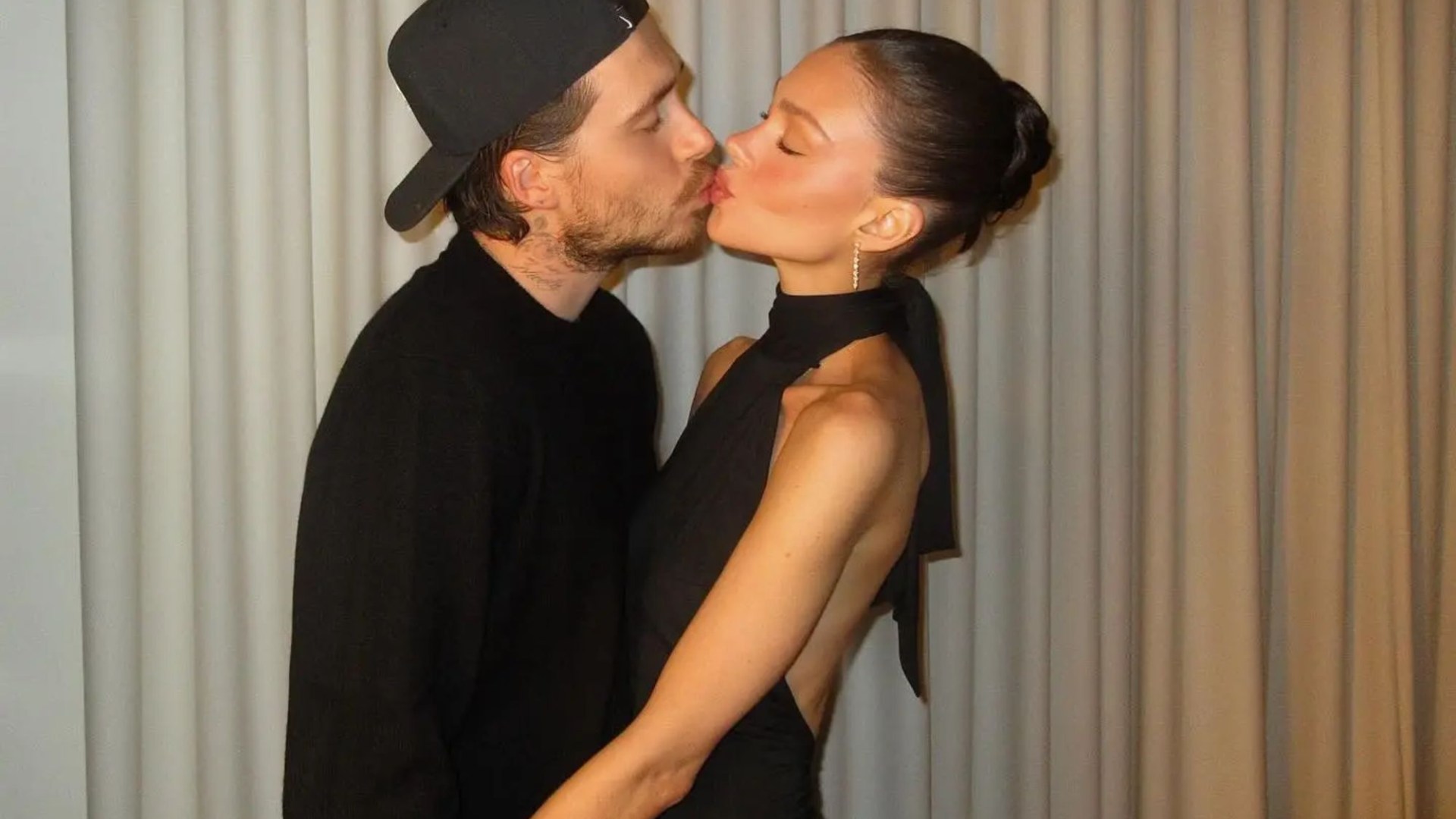 Meanwhile Brooklyn complimented her in an all black outfit made to have a more casual feel through the addition of a backwards baseball cap.