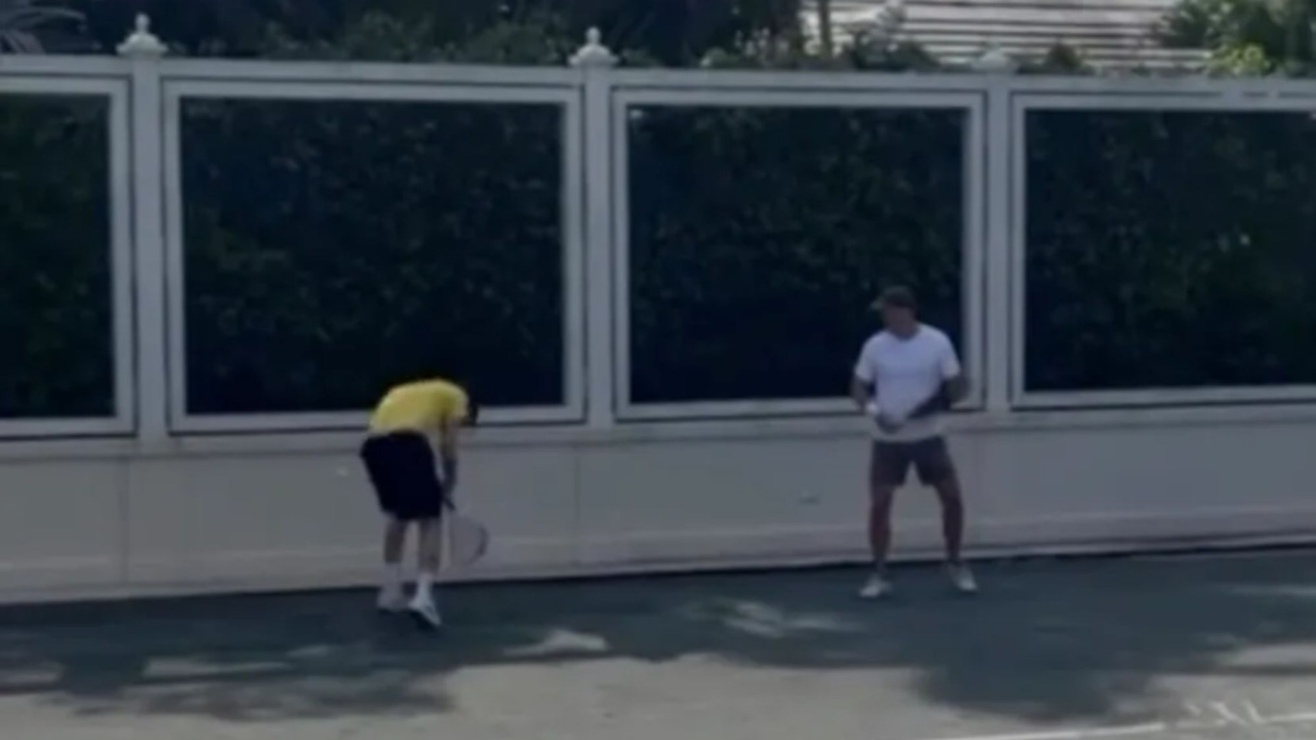 Brooklyn was spotted playing tennis with pro player Reilly Opelka on the courts, as well as Nicola’s brother Bradley.