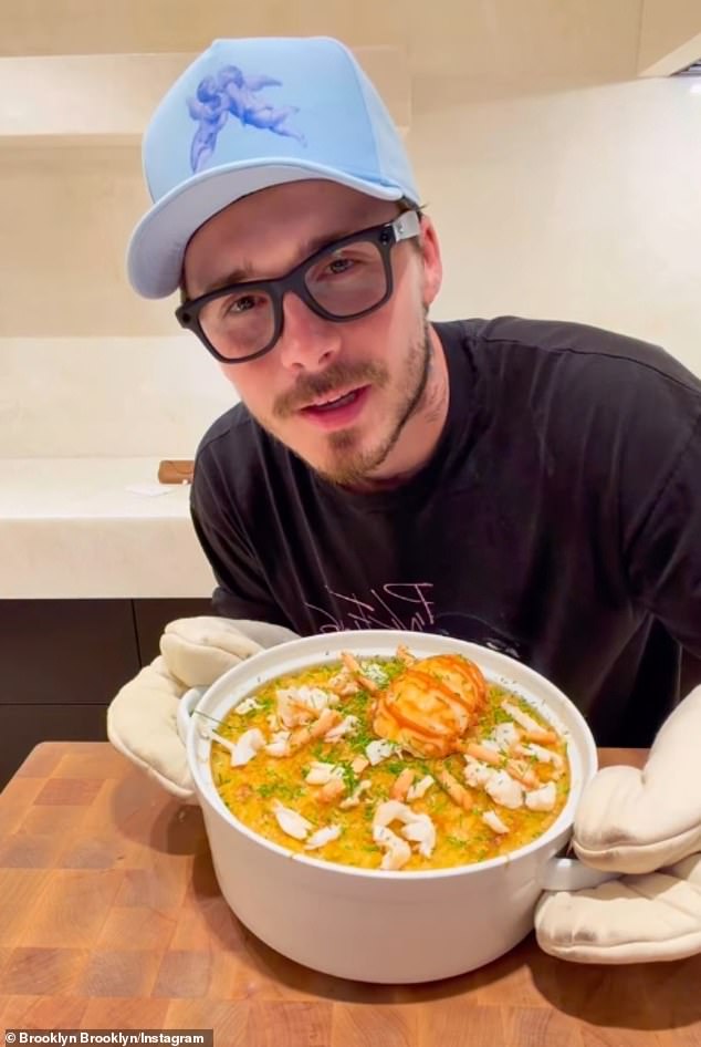 In the clip, Brooklyn looked in good spirits as he demonstrated how to peel and boil a lobster before displaying it over a pot of macaroni.