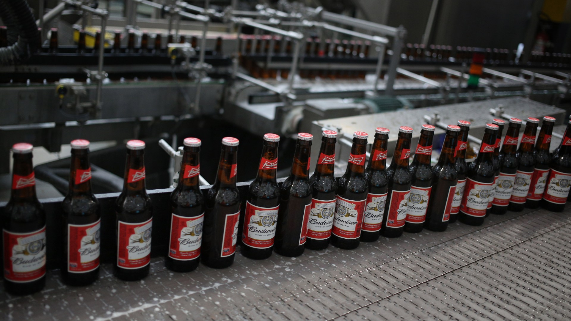 Bottles of beer move along the production line at the Anheuser-Busch Budweiser bottling facility in St. Louis, Missouri, U.S., on Tuesday, July 28, 2015. Anheuser-Busch InBev NA is scheduled to release earnings figures July 30. Photographer: Luke Sharrett/Bloomberg via Getty Images