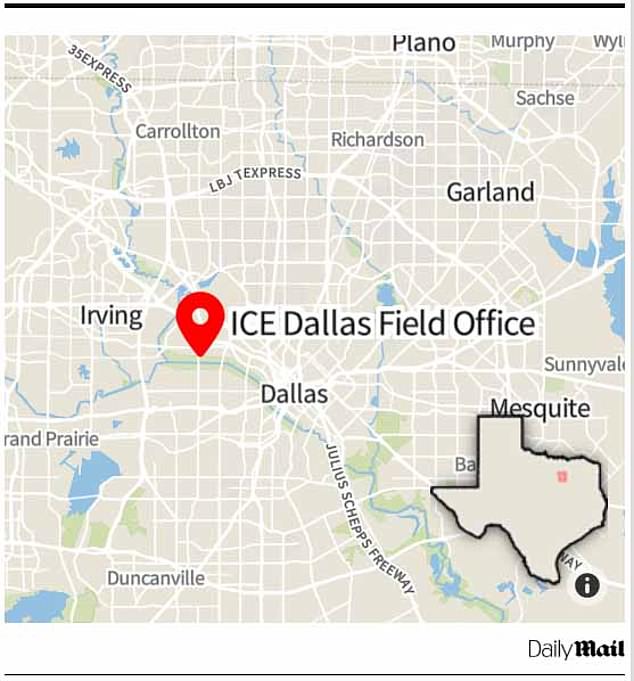 ‘ICE and Dallas police have secured the scene at our Dallas field office, where a shooter opened fire on the facility this morning, firing indiscriminately at the building and those in the sallyport,’ the agency said.