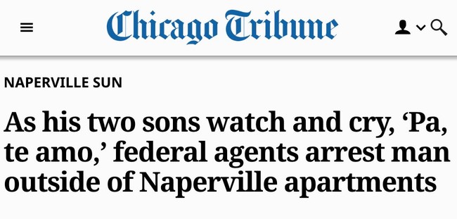 That one headline sets a tone: an innocent father brutally ripped away from his sons, who are devastated by the loss of their father whom they love so dearly that they weep uncontrollably as he gets dragged away by the ICE Gestapo.
