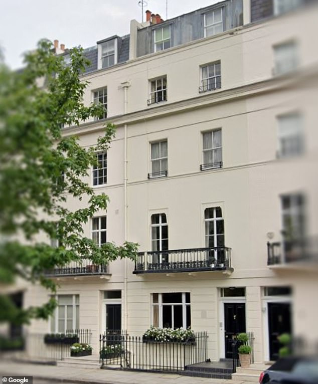 Michelle Mone’s luxury Belgravia London townhouse has been purchased by a racing driver whose father is worth £525 million, it was revealed today (Pictured: Baroness Mone standing in front of the property)